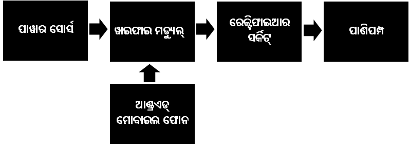ପ୍ରକଳ୍ପରେ ବ୍ୟବହୃତ ହୋଇଥିବା ଅପଚାୟୀ ଟ୍ରାନ୍ସଫର୍ମର ଟି ୨୩୦ ଭୋଲ୍ଟ ବିଶିଷ୍ଟ ପ୍ରତ୍ୟାବର୍ତ୍ତୀ ବିଦ୍ୟୁତ ସ୍ରୋତ କୁ ୧୨ ଭୋଲ୍ଟ ବିଦ୍ୟୁତ ସ୍ରୋତ ରେ ପରିଣତକରିଥାଏ। ଏହି କୁ ୧୨ ଭୋଲ୍ଟ ବିଦ୍ୟୁତ ସ୍ରୋତ ରେକ୍ଟିଫାଇଆର୍ ସର୍କିଟ୍ ମାଧ୍ୟମରେ ସଳଖ ସ୍ରୋତରେ ରୂପାନ୍ତରିରିତ ହୋଇଥାଏ। ପାଣି ପମ୍ପର ପରିଚାଳନା ନିମନ୍ତେ ୧୨ ଭୋଲ୍ଟ ବିଶିଷ୍ଟସଳଖ ବିଦ୍ୟୁତ ସ୍ରୋତ ବ୍ୟବହୃତ ହୋଇଥାଏ । ୱାଇଫାଇ ମଡ୍ୟୁଲ୍ ଟି ସୁଇଚ୍ ବୋର୍ଡ ର ଥ୍ରୀପିନ୍ ସକେଟ୍ ରେ ସଂଯୋଗ ହୋଇଥାଏ । ପ୍ରକଳ୍ପଟି ଉକ୍ତ ୱାଇଫାଇ ମଡ୍ୟୁଲ୍ ରୁ ବିଦ୍ୟୁତ ସଂଯୋଗ ପାଇଥାଏ । ୱାଇଫାଇ ମଡ୍ୟୁଲ୍ ଟି ଏକ ସ୍ୱତନ୍ତ୍ର ଆଣ୍ଡ୍ରଏଡ୍ ଆପ୍ ମାଧ୍ୟମ ରେ ପରିଚାଳିତ ହୋଇଥାଏ । ଉକ୍ତ ଆପ୍ କୁ ଗୁଗୁଲ୍ ପ୍ଲେ ଷ୍ଟୋର୍ ରୁ ଡାଉନ୍ ଲୋଡ୍ କରି ଆଣ୍ଡ୍ରଏଡ୍ ମୋବାଇଲ ଫୋନ ରେ ଇଂଷ୍ଟଲ୍ କରାଯାଇଥାଏ । ମହଜୁଦ ଥିବା ୱାଇଫାଇ ଇଂଟରନେଟ୍ ଜରିଆରେ ଉଭୟ ଆଣ୍ଡ୍ରଏଡ୍ ମୋବାଇଲ ଫୋନ ଓ ୱାଇଫାଇ ମଡ୍ୟୁଲ୍ ମଧ୍ୟରେ ସମ୍ପର୍କ ସ୍ଥାପନ କରାଯାଇଥାଏ। ଇଂଟରନେଟ୍ ର ଉପସ୍ଥିତିରେ, ଆପ୍ ମାଧ୍ୟମ ରେ ୱାଇଫାଇ ମଡ୍ୟୁଲ୍ କୁ ପରିଚାଳିତ କରାଯାଇଥାଏ। ପ୍ରକଳ୍ପଟି ୱାଇଫାଇ ମଡ୍ୟୁଲ୍ ରୁ ପାୱାର ପାଉଥିବାରୁ, ପାଣିପମ୍ପ ର ସକ୍ରିୟ ଏବଂ ନିଷ୍କ୍ରିୟ ଅବସ୍ଥା ୱାଇଫାଇ ମଡ୍ୟୁଲ୍ ର ସକ୍ରିୟ ଏବଂ ନିଷ୍କ୍ରିୟ ଅବସ୍ଥା ଉପରେ ନିର୍ଭର କରିଥାଏ ।