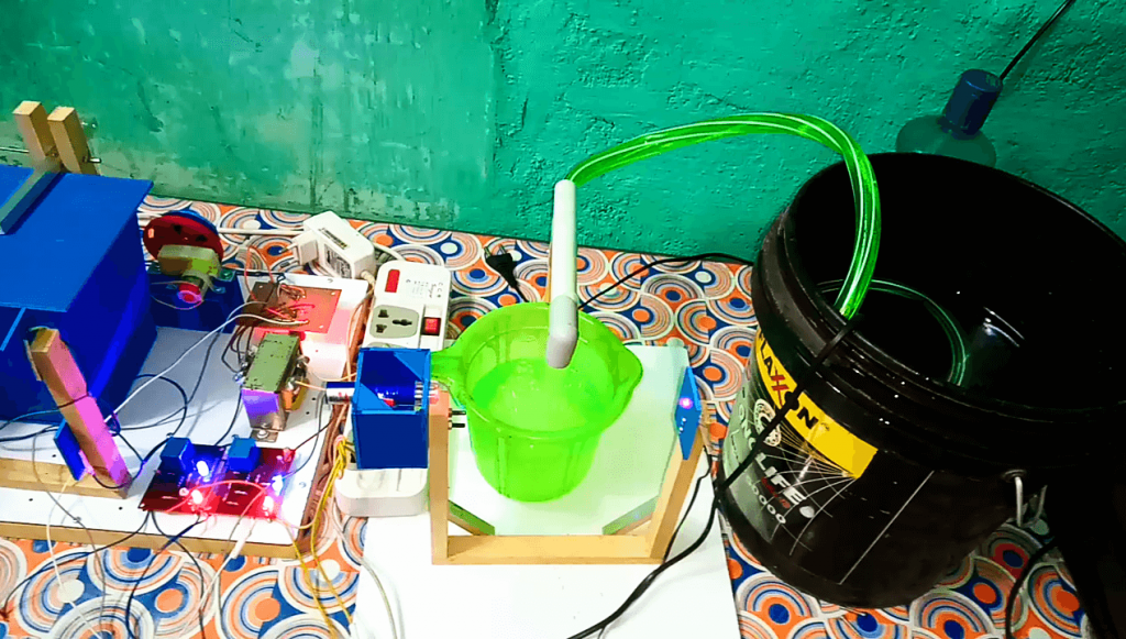 Here we are using a centrifugal submersible type water pump. It takes 230 volt ac for its operation.