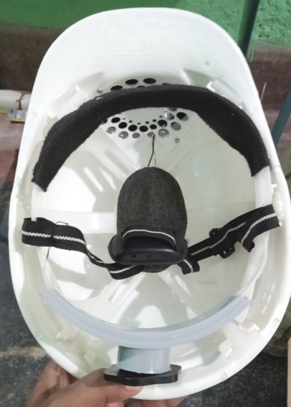 The forced cooling air enters into the helmet through the holes and provides a cooling sensation. The skull temperature remains at lower level and avoid any condition of heat exhaustion. The required electrical power is collected from the light weight solar panel mounted on the top of the helmet. The cooling process is proportional to the intensity of sunlight. That means at the noon when the sun is exactly above us and radiating excess heat, the cooling is maximum. The switch provided in series with the solar panel gives the user an option to switch off the cooling fan. As the helmet is of white colour it reflects back the most of the sun light. When air from environment comes in contact with sweating skin it feels cool due to the evaporation of sweat. Because evaporation causes cooling. As we are getting the power directly from the sun through solar cell no need to use any batteries. So, the energy we are using to operate the cooling fan is completely free and clean.