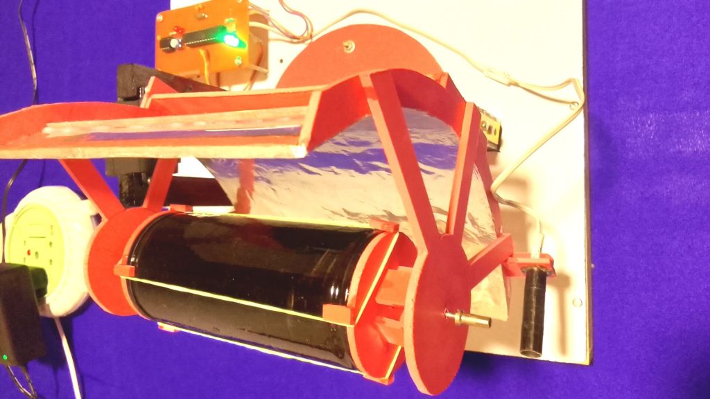 This is a very effective project on nonconventional energy resources. In this project we are making a parabolic reflector based solar cooker with automatic solar tracking for consuming heat energy from the sun. A parabolic solar reflector is a structure that uses concentrated solar power to produce high temperatures. This heat energy can be utilized to boil water, cook food, producing steam etc.