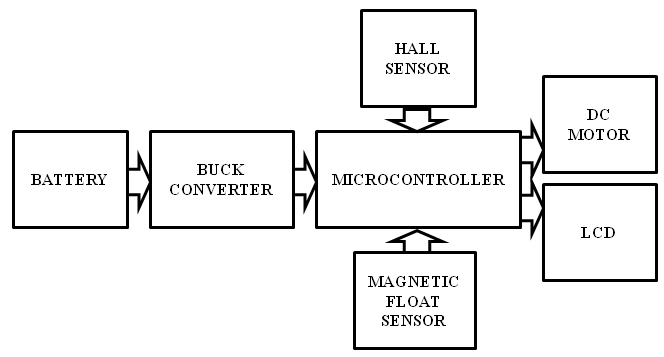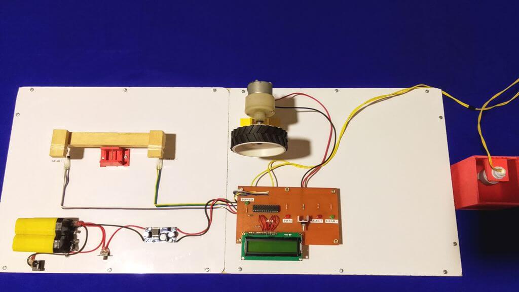 There is a magnetic float sensor situated inside the fuel tank. When the tank is full with petrol, the level of fuel is mentioned in display. When the level of fuel is low, rider has to fill up the tank at the nearest petrol pump. The gear lever contains two small pieces of magnets closer to two respective hall sensors. When we increase the gear by pressing the lever, the hall sensor sends an analogue signal to the microcontroller which changes the pulse width modulation(PWM) signal fed to the dc motor to increase its revolution per minute (rpm). Similarly when we lower the gear, the rpm of the motor decreases. There are four number of gears available and the percentage speed is divided in four parts accordingly. Gear 1 is associated with the lowest speed(25%) and Gear 4 is associated with the highest speed(100%).